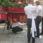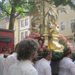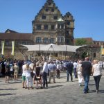 Zu den sicher eindrucksvollsten katholischen Festen in Deutschland zählt Fronleichnam, das Fest des „ Heiligsten Leibes und Blutes Christi“, das in der Mitte des 13. Jahrhunderts kirchlicherseits eingeführt wurde. Besonders feierlich wird die Fronleichnamsprozession noch heute in der oberfränkischen Bischofsstadt Bamberg abgehalten. Nach dem Festgottesdienst auf dem Domplatz, vor dem romanischen Kaiserdom, bewegt sich der lange Zug mit dem Allerheiligsten, getragen von Erzbischof Ludwig Schick, mit zahlreichen Tragefiguren der Zünfte und Bruderschaften sowie den gewaltigen Baldachinaufbauten mit dem Mariengnadenbild aus der Oberen Pfarre und der Pieta vom Beginn des 14. Jahrhunderts aus der Martinskirche durch die Straßen und Gassen der Stadt. Dabei ist es für zahlreiche Bamberger eine Ehre bei der Prozession mitzuhelfen. Allein das wertvolle, 16 Zentner schwere, Domkreuz wird von 18 Trägern bewegt. Die Gebete, Gesänge und Segensworte werden über Lautsprecher in der gesamten Altstadt übertragen, so dass sich kein Besucher der Stadt dem feierlichen Geschehen entziehen und selbst in einem der zahlreichen Cafés an der Liturgie teilnehmen kann (oder muss).