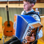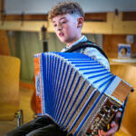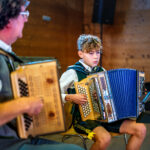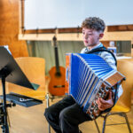 Alle Schüler hatten sauber aufgespielt und erhielten den verdienten Applaus vom Publikum. Stimmung kam gleich am Anfang auf, als Jakob Voggenauer die „Hey Mann Polka“ von den Zillertaler Schürzenjägern schwungvoll und sauber zum Besten gab. Basti Eizenhammer begeisterte das Publikum unter anderem mit dem bekannten Stück von Herbert Pixner „Vierteljahrhundert Dreiviertler“ und dem Stück „SCHEE!“ von der gleichnamigen CD von Resch, sehr zur Freude des Komponisten. Eine der jüngsten Musikantinnen war Matilda Wimmer (8 Jahre), die nach nur 3monatigem Unterricht fehlerfrei und gelassen aufspielte. Extra für das Konzert formierte sich eine kleine „Band“ mit Elisa Kettelberger, Franziska Nickl und Bastian Kindermann, alle an der Gitarre mit Gesang bei Bob Dylan’s Klassiker „Knockin‘ on heaven’s door“, begleitet vom Helli. Franzi Nickl (14 Jahre) war auch noch ganz alleine zu hören mit „Wonderful life“ aus den 80er Jahren, sehr gefühlvoll gespielt und gesungen!