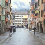 -Der begrünte Innenhof befindet sich im Gebäude des ehemaligen Franziskanerklosters, in dem heute das Tiroler Volkskunstmuseum untergebracht ist