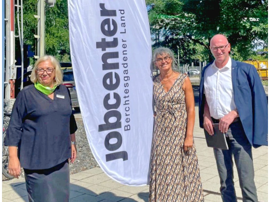 Bericht und Foto: LRA BGL – Heike Spruck-Gruber, Geschäftsführerin des Jobcenters in Bad Reichenhall (v.l.), Jutta Müller Vorsitzende der Geschäftsführung der Agentur für Arbeit Traunstein, Landrat Bernhard Kern