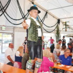 Begleitet von der Seeoner Blaskapelle unter der Leitung von Andreas Niedermaier wurden die ersten Stunden verbracht. Danach ging es mit einem letzten Stück über zum „Trauntal-Express“, dass beide gemeinsam spielten. Zwischendurch gab es Einlagen der „Seeoner Goaßlschnoiza“ die auch schon ihren Nachwuchs dabeihatten. Für den richtigen Ton im Zelt sorgte die AMC-Veranstaltungstechnik um Martin Freiwang. Die Trachtler hatten ein riesiges Areal aufgebaut, neben der gut 50 Meter langen Bar, gibt es auch im Freigelände einen Aperolstand und auch eine Weißbierinsel. Die Bar wurde in mühevoller Weise aus einem abgerissenen Stadel aus Altholz gefertigt, das Dach sind ein Teil der Überreste der aktuellen Dachsanierung des „Hafenwirts“.