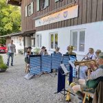 Bereits zum zweiten Mal in der nunmehr gut zweijährigen Zeit als Pächter des Gasthauses Schützenwirt hat Jonas Spensberger musikalischen Besuch aus Kirchheim bei München bekommen. Nach dem ersten winterlichen Gastspiel in den Innenräumen konnte nunmehr bei bestem Sommerwetter der Biergarten genutzt werden. Die Besucher erfreuten sich an Blasmusik, Bier und Biergarten und auch am Gesang der Kapelle „Mia sans“ mit dem Duo „Zwoagschroa“. Wirt Spensberger, der das Schützenhaus der Königlich Privilegierten Feuerschützengesellschaft kurz vor Beginn der Corona-Krise übernahm, kam zu folgendem positiven Resümee als er sagte: „Das war einer der schönsten Abende in der doch recht wechselhaften Coronazeit auch für unser Personal und es war bestimmt nicht das letzte Mal, dass wir Musikanten eine Gelegenheit geben, Biergartenmusik zu machen“.