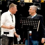 6002: Susanne Obertanner auf der Bühne vor der Agape-Band (links) und der Musikkapelle Weildorf legt Zeugnis für ihren Glauben ab und erzählt, was sich geändert hat, seit Jesus in ihr Leben gekommen ist.