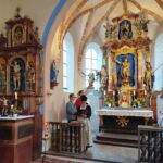 Es ist eine gute Tradition und ein echtes Bekenntnis zum Glauben, zur Heimat und zum Gedenken an die verstorbenen Mitglieder, der alljährliche Bittgang des Griesstätter Trachtenvereins, der dieses Jahr am Sonntag, den 14. September stattfand. Leider regnete es „gscheid“, als um 8 Uhr der Bittgang von Griesstätt ins 3 km entfernte Berg starten sollte. Also wurde rasch umdisponiert und ein Rosenkranz in der schönen Filialkirche in Berg gebetet. Sehr zu unserer Freude zelebrierte den anschließenden feierlichen Gottesdienst, unser neuer Pfarrer Andreas Kolb. Lesungen und Fürbitten wurden sehr gut vorgetragen von Lisa Bauer, in der feschen Röckefrautracht. Und auch der Altardienst, Buam und Dirndl waren zumeist in unserer schönen Tracht erschienen. Und natürlich auch viele von uns Teilnehmern.