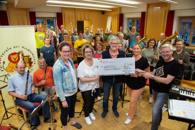 Bei einer Musikprobe im April konnten jetzt der Vereinsvorsitzenden Mihaela Hammer und der Schatzmeisterin Sonja Cvetko aus der Hand vom Musikvorstand Georg Leidel, der Kassenwartin Barbara Dienhart und Dirigent Albert Osterhammer ein Scheck in dieser Höhe übergeben werden. Die Musikanten erfuhren dabei von Frau Hammer aus erster Hand, dass man über diese Spende sehr dankbar ist. Der Verein hat es sich zur Aufgabe gemacht hat, die Kinderklinik in solchen Bereichen zu unterstützen, die vom Träger der Klinik nicht bestritten werden können. In den letzten Jahren konnte so zum Beispiel ein Spielzimmer eingerichtet, Bastelmaterialien und Spielzeug zur Verfügung gestellt oder eine kinderfreundliche Gestaltung der Krankenzimmer verwirklicht werden. Auch Betten für Eltern, deren Kinder auf der Intensivstation liegen, wurden angeschafft und ermöglichen es so, dass diese in dieser schwierigen Situation möglichst nah in bei ihrem Kind sein können. Als letztes Projekt konnte kurz vor Weihnachten die „Babyklappe“ am RoMed-Klinikum eingeweiht werden.