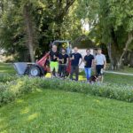 Fotos: Gemeinde Chiemsee – Natur-Friedens-Zeichen auf der Fraueninsel – 1.von links:Bauhofmitarbeiter Florian Pertl, Bauhofmitarbeiter Sebastian Millkreiter, Gärtner und Baumpfleger Martin Haberlander, 1. Bürgermeister Armin Krämmer und 2. Bürgermeister Kurt Lehner. 2. Weitere Aufnahmen.