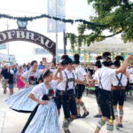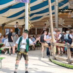Zum Auftritt im sonnigen Biergarten kamen die aktiven Dirndl und Buam sowie die Goaßlschnalzer vom Trachtenverein „Daxenwinkler“ Atzing. Der Kontakt entstand im Vorjahr als die Atzinger beim Erntedankfest von Bad Gögging in der Hallertau auftraten. Begleitet wurden die Atzinger von der 24 Frauen und Männer starken Musikkapelle Samerberg.