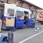 - einen voll bepackten Sprinter, daneben der 7,5-t- LKW des Helferkreises