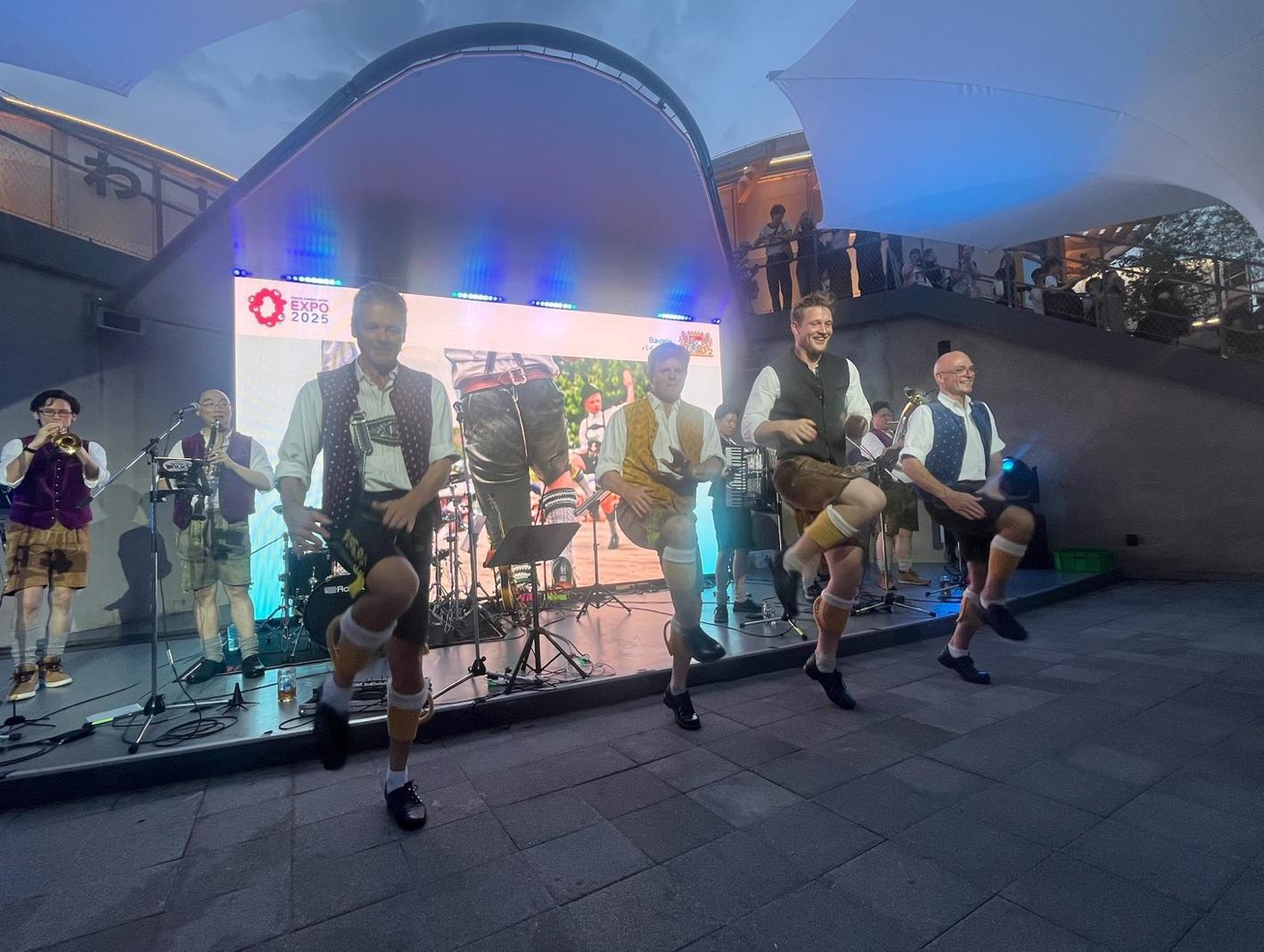 Peter, Andi und Luki und Martin beim Platteln, dahinter die Tokio Spitzbuam mit Ado Kihara