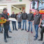 Doppelte Freuden und auch vielfache Gründe zum Danken gab es bei der Feuerwehr in Prien-Atzing. Just am Tag als Rosi Huber, Ehefrau des Ersten Kommandanten der Atzinger Feuerwehr ihren 40. Geburtstag feiern konnte, galt es für ihren Mann Paul das neue Feuerwehrfahrzeug LF 20 Kat S in der Nähe von Linz abzuholen. Getan und Geburtstagsfeier daheim verschoben ging alles seinen Weg. Als nunmehr das 420.000 Euro wertvolle Feuerwehrfahrzeug in Atzing ankam (wir berichteten), da freute sich natürlich auch Rosi Huber. Und besonders überrascht wurde sie mit ihrem Mann auch noch: stellvertretender Kommandant Bernhard Summerer und Anna Boggusch als Leiterin der Jugendfeuerwehr überbrachten vor versammelter Aktiven-Mannschaft nicht nur herzliche Geburtstagswünsche und Blumen für Rosi, sondern auch noch eine von Christiane Huber gefertigte Torte mit dem neuen Feuerwehrauto-Motiv. „Damit wollen wir Dir, Paul und Dir Rosi für all Eure Bemühungen und für all Euer Verständnis danken, denn es war nicht leicht, dass wir nach zwei Jahren der Überlegungen und Planungen ein so wichtiges und neues Löschfahrzeug bekommen“ – so Anna Boggusch und Bernhard Summerer gemeinsam. Die gesamte Aktiven-Mannschaft überreichte noch einen Gutschein für einen Erholungstag in der Therme Erding. Priens Bürgermeister Andreas Friedrich schloss sich den Glückwünschen und dem Dank mit der Überreichung eines Hochalmgold-Flascherls als persönlichen Präsent an. „Wenn wir wieder normal und mehrfach zusammenkommen können, dann feiern wir Auto und Geburtstag nach!“ – so der sichtlich überraschte Kommandant Paul Huber.