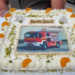 Fotos: Hötzelsperger – 1. Von links: Bernhard Summerer, Bgm. Andreas Friedrich, Paul Huber, Rosi Huber und Anna Boggusch. 2. Überreichung 3. Feuerwehrauto-Torte