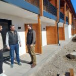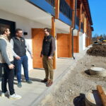 -Die Betreiber, Benedikt Gschwendner (rechts), Vincent Gschwendner und Thomas Stöger (links) auf einer der Terrassen vor dem beinahe fertig gestellten Hotel.