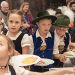Natürlich war es auch für die jungen Trachtler ein aufregendes Ereignis – endlich mal die Räume des alten Schlosses sehen zu dürfen und sich ein Bild von unseren Schülern machen zu können. Diese gaben den kleinen Gästen gerne den Vortritt am abendlichen Buffet, das passend zum Anlass ganz bayerisch vorbereitet war. Die Kinder mischten sich selbstverständlich unter die Schüler im Speisesaal und genossen das außergewöhnliche Ambiente. Draußen wurde sogar auf unserem Streetball-Platz in neuer Freundschaft ein wenig gekickt. Ein gelungener Spätnachmittag, der schöner nicht hätte sein können und Schloss- wie Marktgemeinde wieder ein Stück näher zusammengeführt hat. Wir freuen uns auf ein Wiedersehen im Mai – wenn alles gutgeht – mit einer traditionellen Maibaum-Aufstellung.