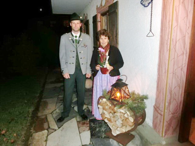Ihren 70. Geburtstag feierte Franziska Sattlberger, bekannt als die “Doagl-Franzi” von der Doagl-Alm am Samerberg. Zu den Gratulanten bei ihrem Zuhause in Schweinsteig gesellte sich auch Erster Vorstand Peter Sattlberger vom Trachtenverein Hochries-Samerberg. Dabei bedankte sich der Trachtenvorstand bei der Trachtlerin für die lange Vereinstreue, für das Tragen des Kassettls und dafür, dass die Trachtler schon oft mit Auftritten zu Gast auf der Doagl-Alm sein durften.