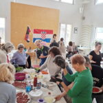 Frau Marijana Mustavar und Martin Mustavar boten – mit tatkräftiger Unterstützung von Frau Jelena und Goran Petkov – einen liebevoll vorbereiteten kroatischen Kochkurs für unseren Verein an. Zu Beginn erhielten wir spannende Einblicke in Kroatien: von der geografischen Lage über die vielen Inseln, die Hauptstadt und die kulturelle sowie religiöse Prägung des Landes bis hin zur Geschichte Kroatiens als Republik. Zudem erhielten die Teilnehmenden interessante Einblicke in die Welt kroatischer Weine. Bevor gemeinsam gekocht wurde, nahm sich Frau Mustavar Zeit für ein Weihrauchgebet, segnete alle Anwesenden und bat um einen schönen, gelungenen Nachmittag – ein sehr berührender Moment. Im Anschluss hörten wir die kroatische Nationalhymne.