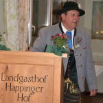 Eine besondere Ehre war es, dass der 1. Vorstand des Bayerischen Inngau-Trachtenverbandes e. V. Pankraz Perfler sich im Saal Rosenheim des Happinger Hofs eingefunden hat, um einigen Alt Rosenheimern, die sich um die Trachtensache besonders verdient gemacht haben, persönlich die Gauehrenzeichen in Silber bzw. Gold zu verleihen.