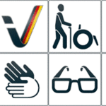 In allen Kategorien wurde die Galerie Bezirk Oberbayern von „Reisen für Alle“ als komplett barrierefrei eingestuft. Abgebildet ist das offiizielle Logo des Bewertungs- und Kennzeichnungssystems samt Piktogrammen: Menschen mit Gehbehinderung, Rollstuhlfahrende, Menschen mit Hörbehinderung, gehörlose Menschen, Menschen mit Sehbehinderung, blinde Menschen, Menschen mit kognitiven Beeinträchtigungen.
