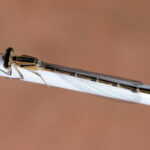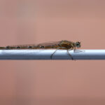 Als ich in der Früh mein Bett auf den Kleiderständer legen wollte, staunte ich nicht schlecht: die Stelle war bereits von einer Libelle, der kleinen Gemeine Becherjunfger besetzt. Vermutlich ein immatures Weibchen (Wikipedia: Ornithologie: noch nicht vollständig ausgefärbt, aber auch nicht mehr im Jugendkleid. Gegenwörter: juvenil, adult). Sie blieb bis Nachmittag gemütlich darauf sitzen.