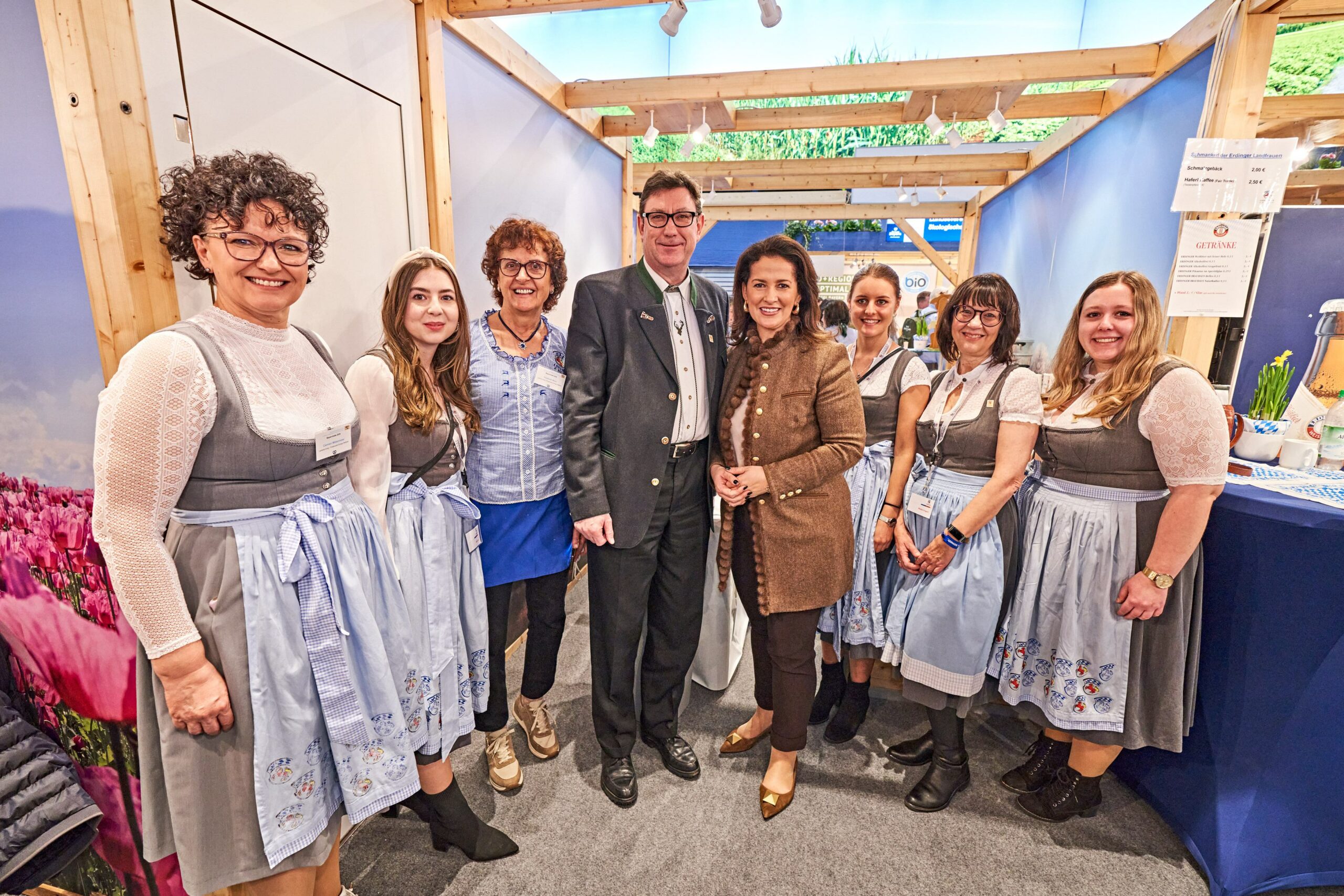 Staatsministerin Michaela Kaniber gemeinsam mit dem Erdinger Landrat und weiteren Mitarbeiterinnen des Gemeinschaftsstandes.