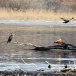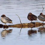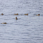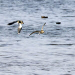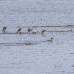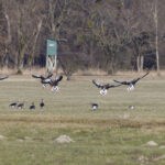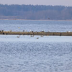 - Die nächste Station ist die Hirschauer Bucht. Weitere Frühlingsboten halten sich dort auf: Kiebitze. Leider fliegen sie zu weit vom Turm entfernt, so dass die Fotos nicht besonders schön sind. Auch ein Großer Brachvogel ist mitgeflogen. Auf dem Wasser sind ebenfalls Krickenten zu sehen. Nach einiger Zeit gesellen sich noch mehr dazu.