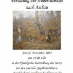 Die Jägervereinigung Rosenheim veranstaltet Ihre traditionelle Hubertusmesse am Sonntag, 2. November in Aschau i. Chiemgau um 19 Uhr in der Pfarrkirche Darstellung des Herrn.