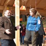 Die Schutzhütte des Waldkindergartens empfing die vielen Gäste zur Einweihung mit gebastelten Fuchs-Laternen und Ketten aus den Früchten des Waldes. Bürgermeister Josef Loferer war stolz, dass das Projekt als Gemeinschaftswerk so gut gelungen ist und nun eingeweiht wurde. Er dankte nochmal den vielen ehrenamtlichen Beteiligten und auch dem Forst, vertreten durch Stephan Mayer und der AWO vertreten durch Kai Wagner (Geschäftsführer) und seinen Mitarbeiterinnen Daniela Weber und Sonja von Rosen, sowie dem Bauhof vertreten durch Peter Hell.