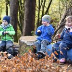 Die Kinder berichten  was ihnen im Wald besonders gut gefällt, so erzählt Marinus (3 Jahre) dass er gern mit Holz spielt, das er dann zum Beispiel als Motorsäge benutzt, wie er es schon bei seinem Papa gesehen hat. Auch die Ameisen findet er interessant, die er gern beobachtet. Victoria (4 Jahre) berichtet, dass sie gern den Eichhörnchen zuschaut und selbst gern auf die Bäume klettern würde.