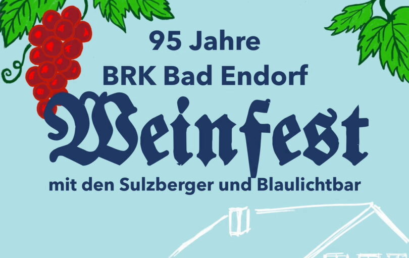 95 Jahre BRK Bad Endorf – das wird am heutigen Samstag, 23. August gefeiert. Hierzu wird zu einem Weinfest mit den Sulzberger-Musikanten und mit einer Blaulichtbar eingeladen.