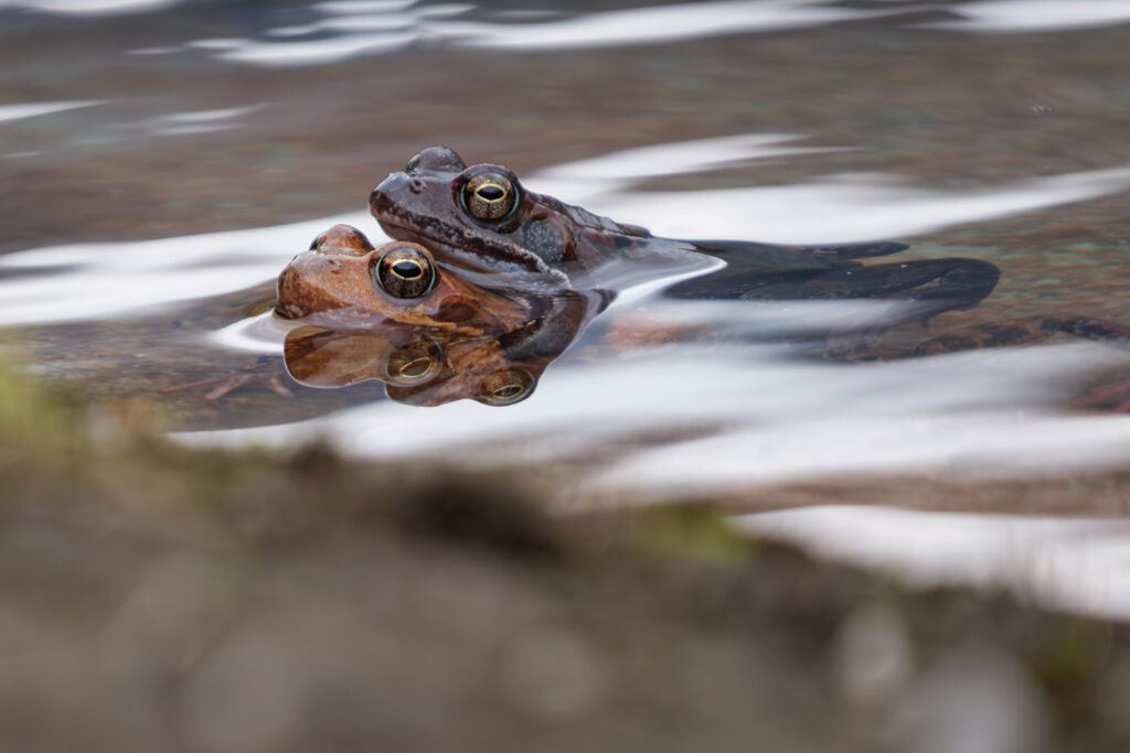 Im Bergsteigerdorf Sachrang am Speichersee tummeln sich derzeit viele Erdkröten und Grasfrösche zum Laichen.