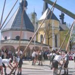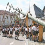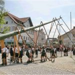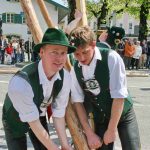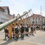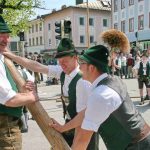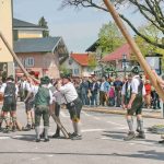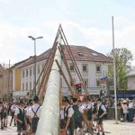 60 Zentner neuer Maibaum mit Hand aufgestellt – halbes Marktfest in Prien am 1. Mai bei Brauchtumspflege der Priener und Hittenkirchener Trachtler