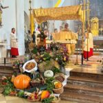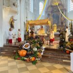 Das durchwachsene Regenwetter am Erntedankfest in Aschau i.Chiemgau brachte zwar den Segen von oben, verhinderte jedoch die geplante Flurprozession. In der katholischen Pfarrkirche Darstellung des Herrn dankten Ortspfarrer Paul Janßen und Diakon Dr. Christian Elsen für die gute und reichliche Ernte des Sommers und spendeten den Segen.