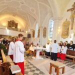 Ein festlicher Erntedank-Gottesdienst wurde in der schön mit Erntekrone sowie mit Garten- und Feldfrüchten geschmückten Filial- und Wallfahrtskirche von St. Salvator mit Pfarrvikar Amit Sinha Roy gefeiert.