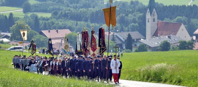 Gleich zwei Fronleichnamsprozessionen werden traditionell auf dem Samerberg durchgeführt. Die erste Feier führte von der Pfarrkirche “Maria Himmelfahrt” hinauf zur Aussichtskapelle in Obereck. Der feierliche Festzug mit der Musikkapelle Samerberg und  mit den Ortsvereinen ergab bei schönstem Wetter schöne Bilder. Das Allerheiligste wurde von Diakon Günter Schmitzberger unter dem Himmel und in Begleitung der Samerberger Gebirgsschützen getragen. Die zweite Fronleichnamsprozession für die Samerberger und ihre Gäste beginnt am Sonntag, 3. Juni um 8.30 Uhr bei der Kirche “St. Bartholomäus” in Rossholzen.