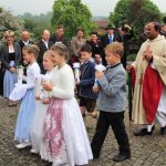 Den Auftakt nahm bei bedecktem Maihimmel ein festlicher Einzug mit der Trachtenkapelle Dettendorf vom Dorfgemeinschaftshaus an den Altar der herrlich geschmückten Pfarrkirche. Das Gleichnis von einem Vater, der seine Tochter über eine Brücke führte, nahm Pater John zum Anlass für seine Predigt. Den Worten des Geistlichen zur Folge, sei es Jesus Christus und sein starker Vater, der nach der Hand von uns Menschen greife und sie in allen Lebenslagen zuverlässig führe. Zu ihm (Gott) könne jedes Kind kommen, so die Botschaft an die Gläubigen.
