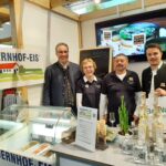 Die Erzeugergemeinschaft für Qualitätsgetreide Erding und Umgebung (EG) freut sich sehr, das 200. Mitglied willkommen zu heißen. Aus diesem Anlass überreichten EG-Geschäftsführer Daniel Gschlößl zusammen mit EG-Beirat Michael Hamburger am Bauernhofeis-Verkaufsstand auf der Internationalen Grünen Woche in Berlin ein kleines Präsent an das neue Mitglied Max Stangl aus Hörlkofen. Die Familie Stangl war das erste Mal mit ihrem Eisverkauf auf der Grünen Woche vertreten – natürlich am Stand des Landkreises Erding, wo „echt erding“ hochgehalten wird.