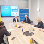 Bild 2: Guter Austausch bei der Vertragsunterzeichnung im Innovationsraum. (v.l) GF Esther Jennings (Euregio Inntal), Vorsitzender Reinhold Frey (Wirtschaftlicher Verband der Stadt und des Landkreises Rosenheim), Vorstandsdirektor Bernhard Schwaiger (Raiffeisen Bezirksbank Kufstein), Präsidentin Barbara Schwaighofer (Euregio Inntal), Vorstandsdirektor Klaus Felderer (Sparkasse Kufstein), Claudia Draxl (Raiffeisen Bezirksbank Kufstein) und Ehrenpräsident KR Walter J. Mayr (Euregio Inntal).