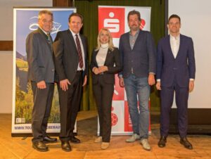 1 vl Landrat Otto Lederer , Tiroler Mobilitätslandesrat René Zumtobel, Euregio Inntal Präsidentin Barbar Schwaighofer, 1 Bürgermeister von Oberaudorf Matthias Bernhard, Arno Kuder ( Referatsleiter Allgemeiner ÖPNV, Bayerisches Staatsministerium für Wohnen ,Bau und Verkehr)