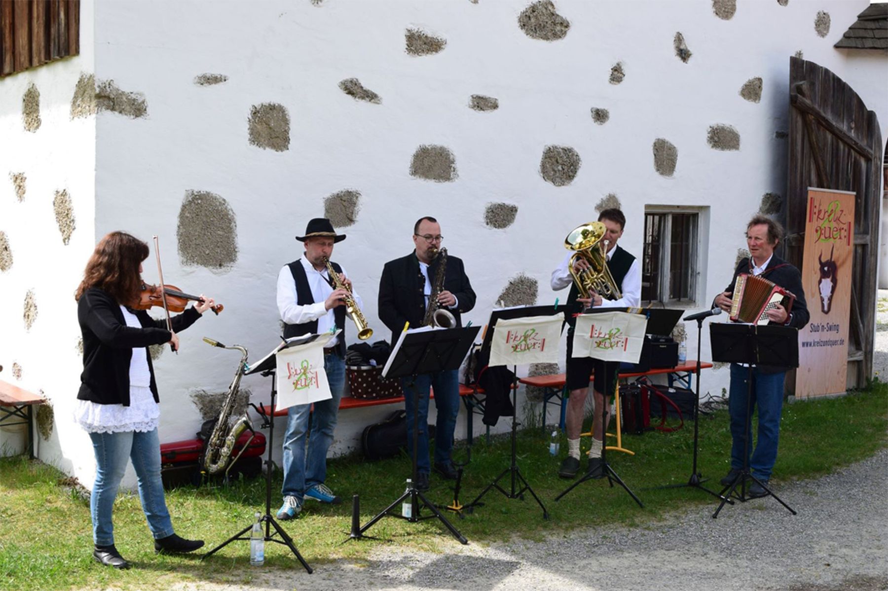 Das Wasserburger Quintett Kreiz & Quer spielt am Maifest im Freilichtmuseum Amerang zum Frühschoppen auf