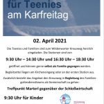 Zusätzliche besteht die Möglichkeit, den Kreuzweg gemeinsam mit dem Familiengottesdienstteam zu gehen. Um 9.30 Uhr für Kinder und um 17 Uhr für Teenies. Treffpunkt am Marterl gegenüber der Schlosswirtschaft Wildenwart.