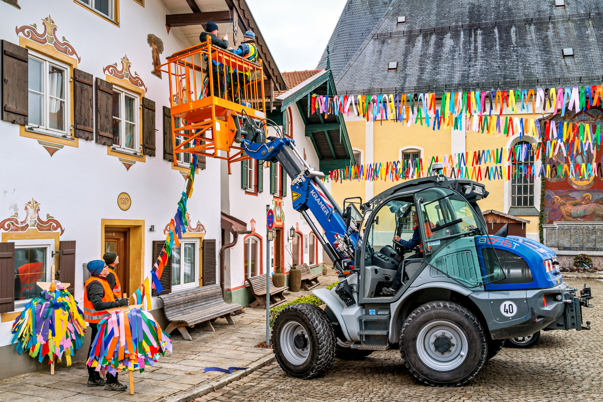 Neubeuern ist bereit: Bauhof spannt das bunte „Bändermeer“ über den Marktplatz