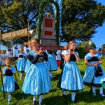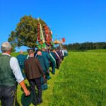 An der anschließenden Prozession, die Stationen am Kindergarten, auf freiem Feld und an der Aussichtskapelle einlegte, beteiligten sich neben dem Chor und den Blasmusikanten auch die Feuerwehr, der Trachtenverein, der Schützenverein sowie der Veteranenverein, jeweils mit ihren Fahnenabordnungen. Die Frauen und Männer des Trachtenvereins „Almarausch“ nahmen hierbei in ihrer festlichen Tracht teil.