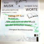 Das Chiemgauer Blockflötenensemble war in der Heilandskirche von Bernau a. Chiemsee mit dem Programm “Alte und nicht so alte Musik von den britischen Inseln” zu Gast.