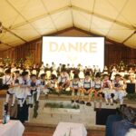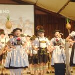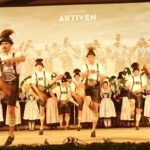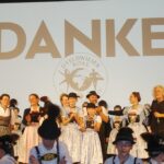 Die vielen Besucher im vollen Festzelt zeigten sich begeistert von den Reiseerinnerungen der Feldwieser, die in den letzten Jahrzehnten von Grabenstätt bis Australien ihre Ziele hatten. Immer wieder beteiligten sie sich an Internationalen Folklorefesten und lernten auf diese Weise Länder, Kulturen und Trachten kennen. Einzigartig wie die Reisebilanz mit rund 400.000 Bus- und Flugkilometern seit den 50er Jahren war auch die Komposition des Abends. Filmische Beiträge von Stefan Erdmann wechselten sich mit Bühnenauftritten der reisefreudigen Trachtler, Alphornbläser und Goaßlschnalzer ab. Den Abschluss bildeten die Amboß-Polka als Gemeinschaftsplattler und ein verdientes “Vergelt´s Gott” den vielen Feldwiesern, Überseern und Chiemgauern, die zum Gelingen der Festtage in der Feldwies beigetragen haben.