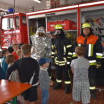 -den Kindern werden die verschiedenen Feuerwehr-Monturen erklärt