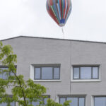 Das Haus der Bayerischen Geschichte in Regensburg ist seit Samstag in Besitz eines eigenen Musemsballons! Der Wettergott hatte ein Einsehen: pünktlich um 11.30 Uhr Regenpause – und der Ballon konnte im Beisein von Bayerns Sozial- und Jugendministerin Ulrike Scharf und Dr. Richard Loibl, Direktor des Hauses der Bayerischen Geschichte, seine Premierenfahrt aus dem Herzen des Gebäudes der Bavariathek heraus in den Regensburger Himmel aufnehmen. Der Ballon ist zentraler Bestandteil der Kunstinstallation „Up!“ der Münchner Künstlerin Katharina Gaenssler, die damit im Januar 2024 den Wettbewerb „Kunst am Bau“ gewonnen hat. Er ist im Innenhof der Bavariathek verankert und wird künftig zu besonderen Anlässen seine Fahrt aufnehmen und senkrecht in die Luft steigen, wie nun zum ersten Mal anlässlich des Fests der Demokratie. Im Laufe des Wochenendes konnte er immerhin acht Mal seinen Aufstieg vornehmen. An Bord sind Kameras, deren Bildmaterial von Gaenssler zu einer wandfüllenden Collage verarbeitet werden.