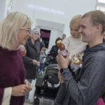 Fest der Demokratie: Bayerns Sozial- und Jugendministerin Ulrike Scharf beim Fest der Demokratie am 5. Oktober 2025 in Regensburg im Gespräch mit einer jungen Familie © Haus der Bayerischen Geschichte | Foto: www.altrofoto.de