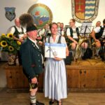 Die Ortsvereine von Hittenkirchen und Umgebung – Veteranen, Feuerwehr, Schützen und Eisschützen – schlossen sich dem Dank an und überreichten gemeinschaftlich ein Fass Bier sowie eine Spende von 1.000 Euro. Der Patenverein Bernau, vertreten durch Vorstand Franz Praßberger, überreichte einen Ausflugsgutschein und bedankte sich für die gute Zusammenarbeit und dafür, dass sie während des Umbaus des Gasthof Kampenwandes das Trachtenheim in Hittenkirchen für Proben und Veranstaltungen nutzen durften. Zum Abschluss überreichte der Nachbar-Trachtenverein aus Prien mit seinen Vorständen Klaus Kollmannsberger und Lorenz Obermüller ebenfalls ein Geschenk zum besonderen Jubiläum.