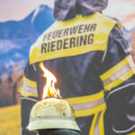 Der brennende Feuerwehrhelm – Symbol des 150-jährigen Jubiläums der Freiwilligen Feuerwehr Riedering. Er steht für Schutz und Einsatzbereitschaft, aber auch für das innere Feuer, das die Feuerwehrleute antreibt: Mut, Mitmenschlichkeit und Verantwortung.