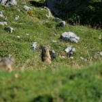 Natürlich dürfen auf den Almwiesen keine Murmeltiere fehlen. Während die Einen aufmerksam wachten, relaxten die Anderen an der Sonne. Almwiesen gibt es nur aufgrund der vielen Arbeit unserer Bergbauern und ihrer Kühe. Eine besonders interessant gezeichnete Kuh in Schwarz-Weiß mit Aalstrich und Augenklappen musste ich einfach ablichten.