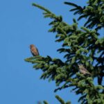 Geschäftig waren die Fichtenkreuzschnäbel, welche nur knapp einem Eichhörnchen entkamen. Weit draußen auf zarten Ästen fühlten sich diese dann sicherer direkt in Nachbarschaft zu einer Klappergrasmücke, welche meist versteckt in den Latschen singt.